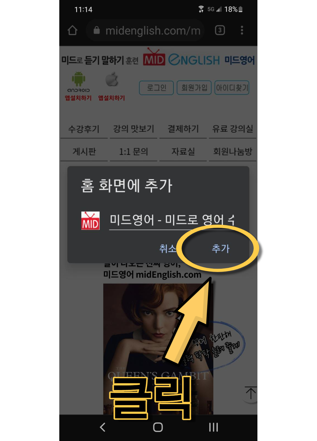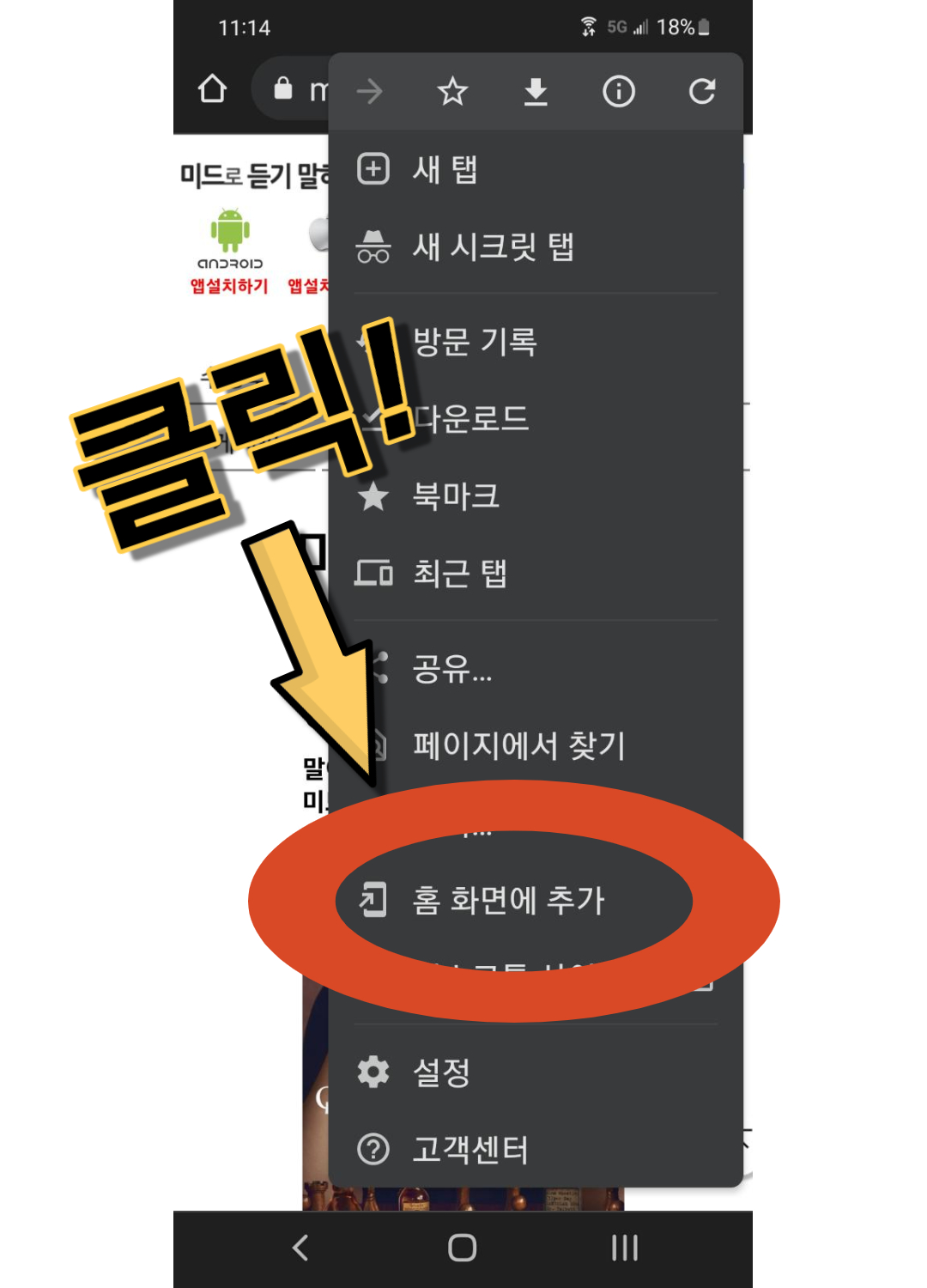 4. 홈 화면에 추가 클릭