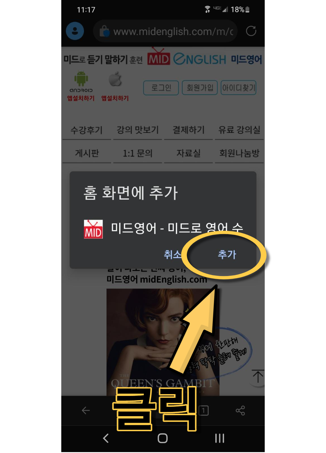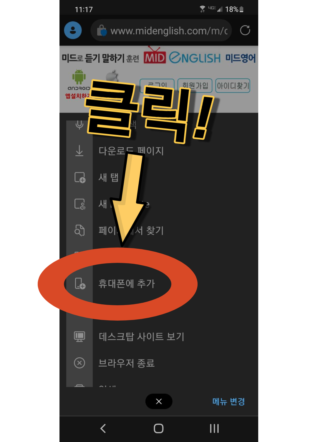 4. 휴대폰에 추가 클릭